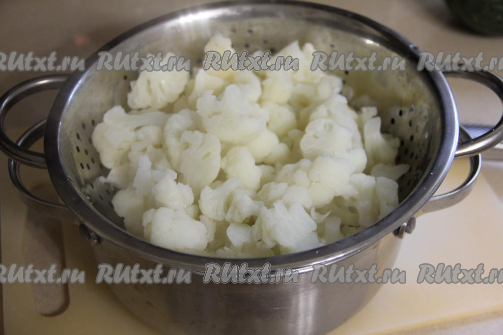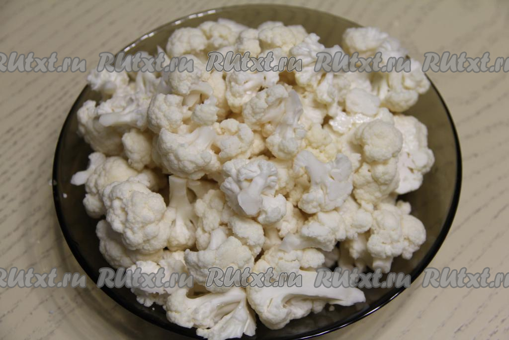 Цветную капусту вымыть, разобрать на небольшие соцветия.