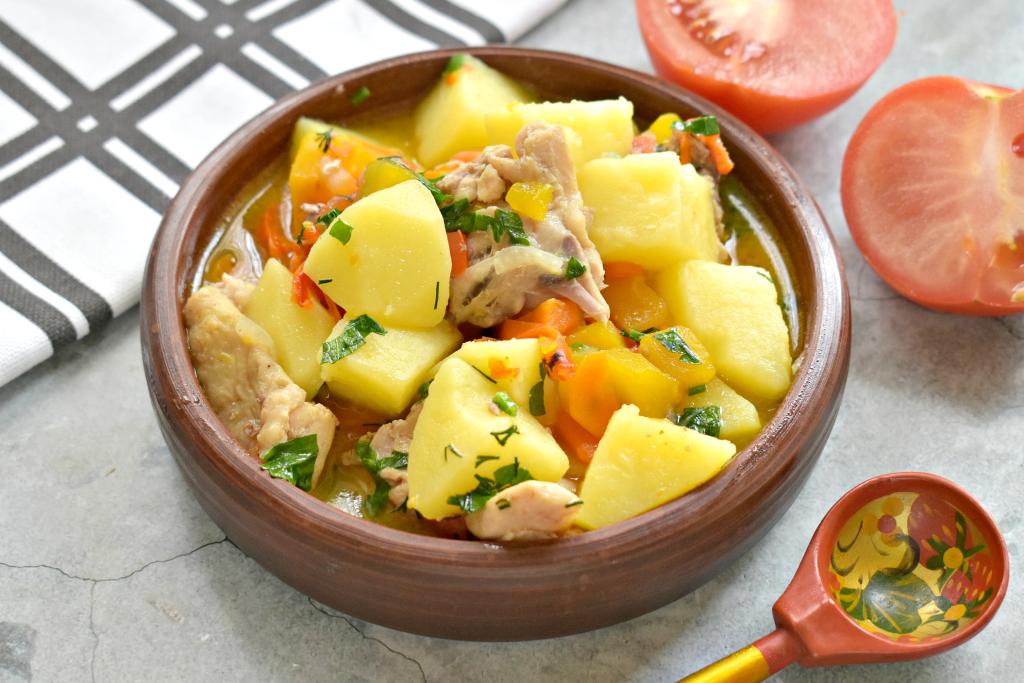 Мясо курицы прекрасно сочетается с различными овощами. В этот раз предлагаю потушить порционные части курицы с добавлением тыквы, картошки, болгарского перца, помидора, морковки и лука. Овощное рагу с курицей получается сочным, аппетитным и очень вкусным. Тыква придаёт блюду приятную сладковатую нотку. Приготовьте рагу по этому рецепту и оно станет замечательным обедом или ужином для детей и взрослых!