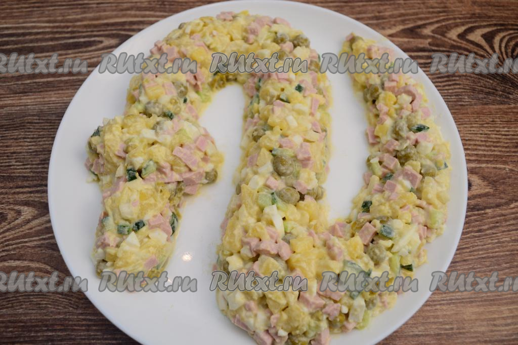 Тематический салат "Оливье" можно подавать к праздничному столу. Счастливого вам Нового года!