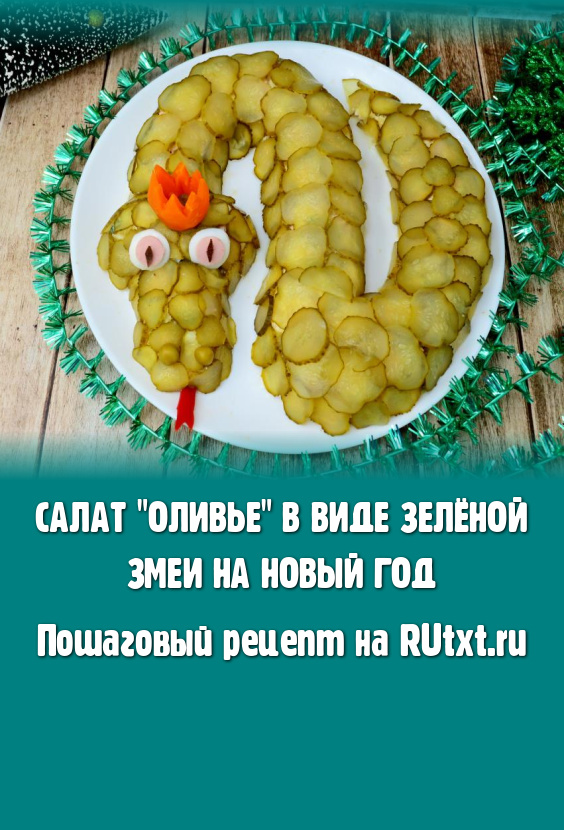 Приближается 2025 год - год Змеи по восточному календарю. Для многих из нас Новый год не может обходиться без салата "Оливье". Все мы его готовим по-разному, у каждого есть свой любимый рецепт. Я предлагаю внести небольшое разнообразие в привычное блюдо и сделать тематический вариант салата "Оливье" в виде зелёной змеи на Новый год. Салат вы можете приготовить по своему любимому рецепту, а за основу взять мои идеи по тематическому оформлению.