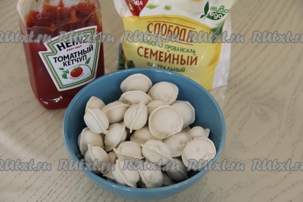 Подготовить продукты. Пельмени размораживать не нужно.