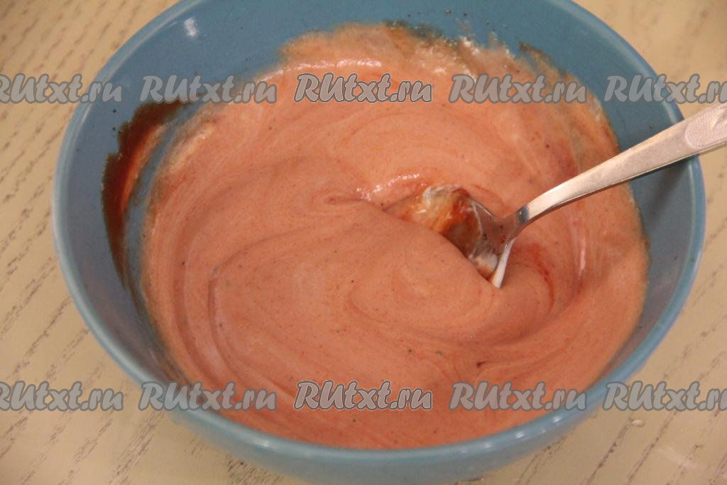Перемешать получившийся соус из майонеза и кетчупа.
