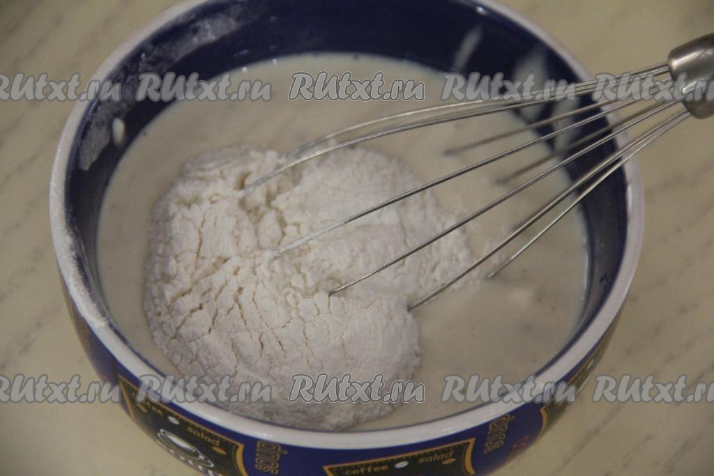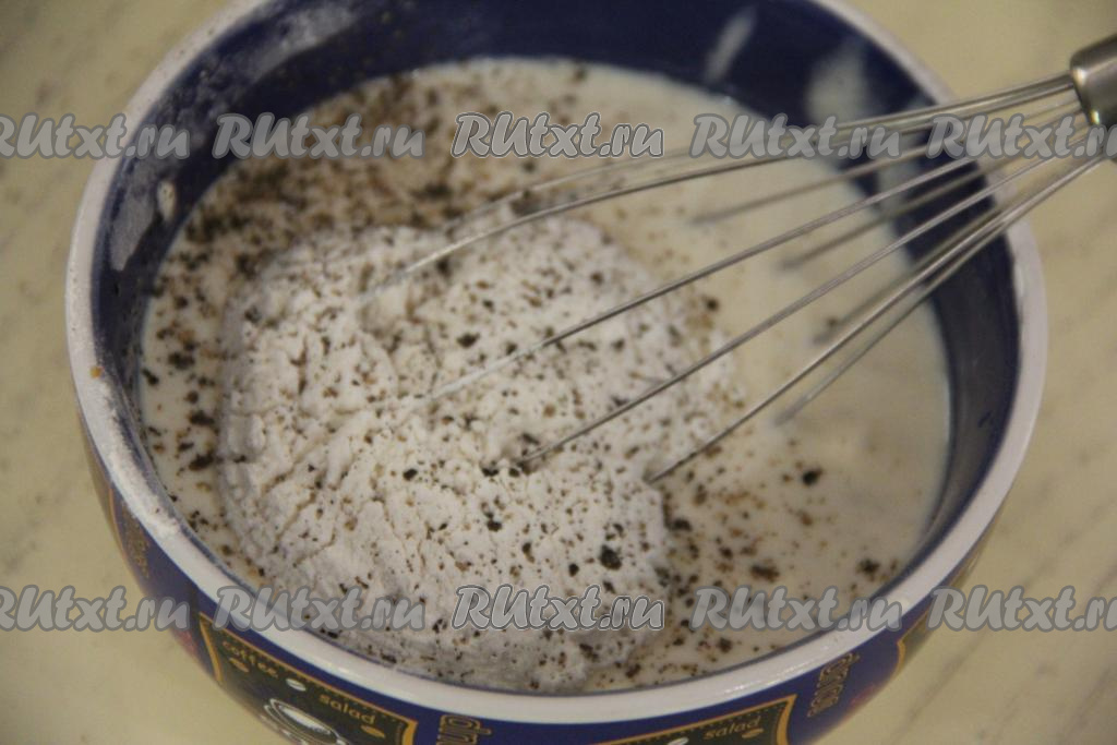 Всыпать муку, перемешать сметанный соус венчиком.