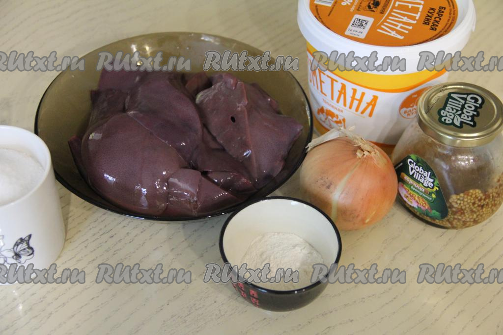 Подготовить продукты. Если свиная печень заморожена, её нужно будет предварительно разморозить при комнатной температуре. Вымыть свиную печень, немного обсушить.