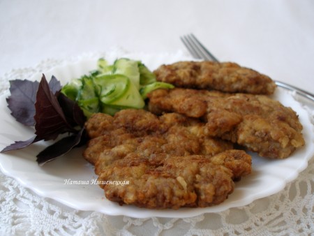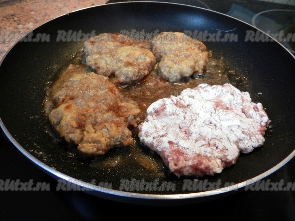 Мокрыми руками сформировать из мясного фарша плоские лепешки (наши "ленивые отбивные").
