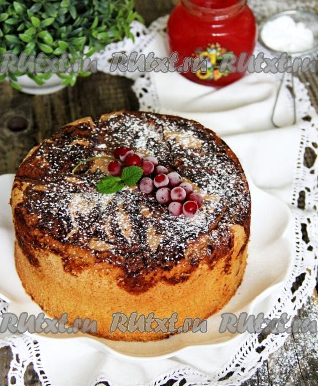 Украсить пирог можно на свой вкус, я припорошила сахарной пудрой и выложила сверху несколько ягод.
