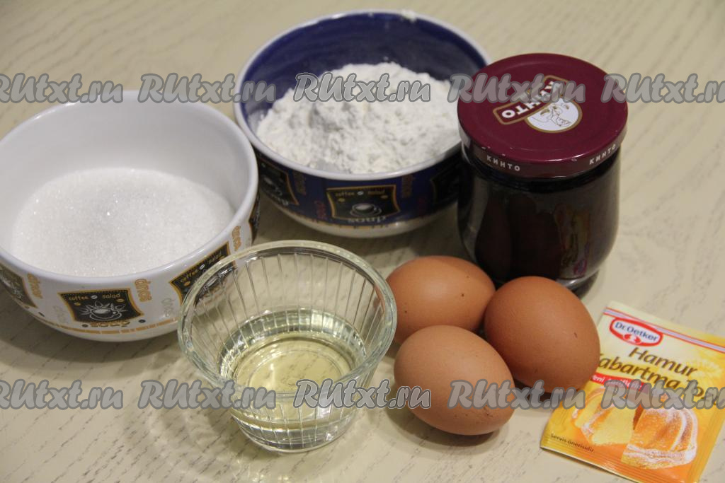 Подготовить продукты. Варенье можно взять любое, у меня - вишнёвое без косточек.