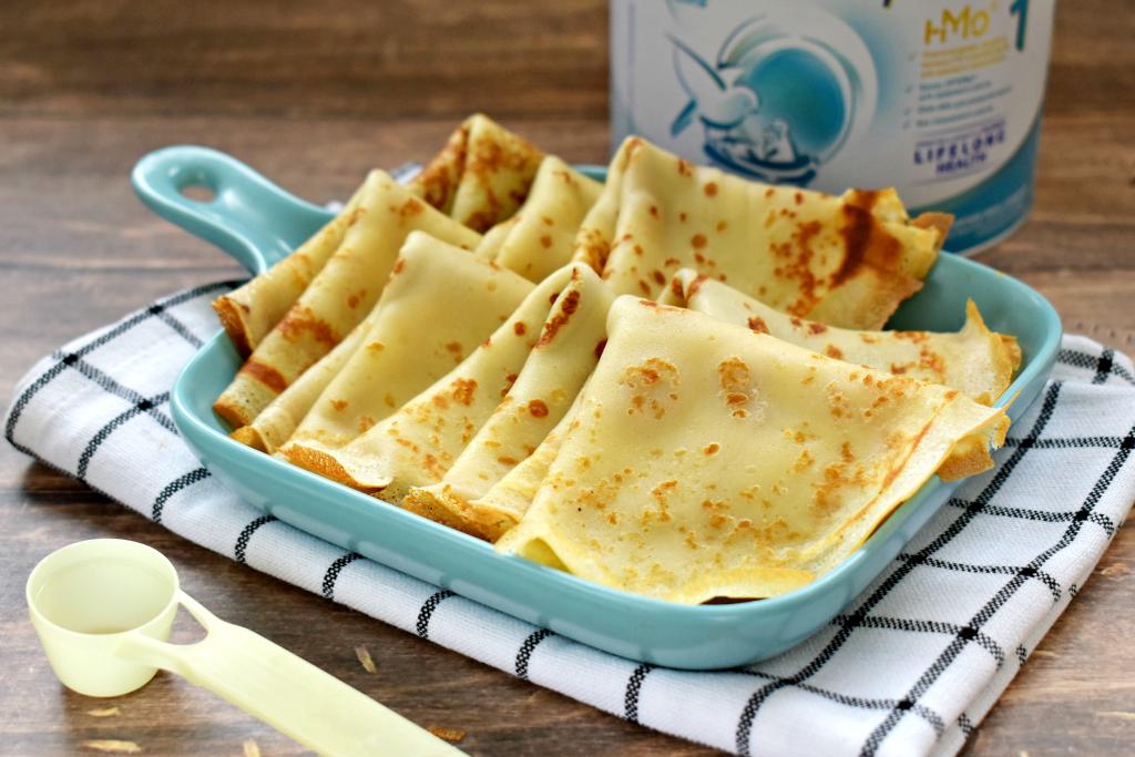 Блины, замешанные на детской молочной смеси, получились нежными, мягкими, в меру сладкими. К столу их можно подать со сметаной, любимым сладким соусом или вареньем.