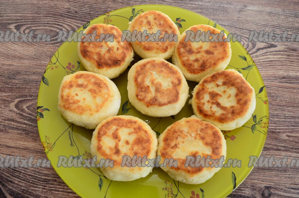 Готовые сырники переложить на плоское блюдо, убрать лишний жир при помощи бумажных салфеток.