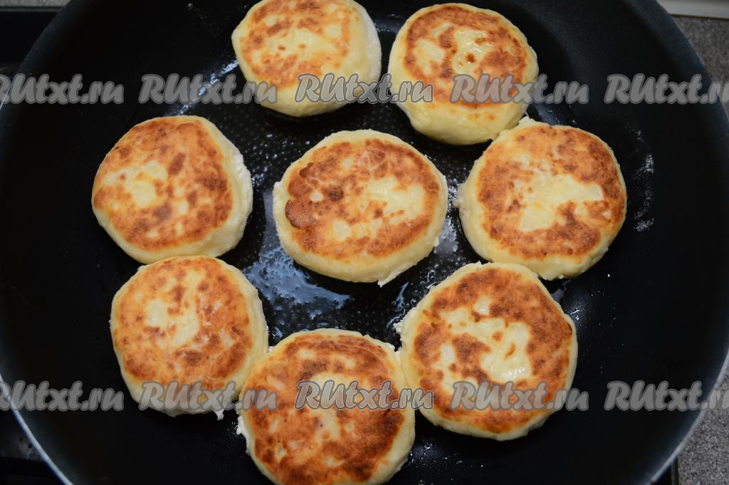 Перевернуть сырники, уменьшить огонь до ниже среднего, накрыть сковороду крышкой. Жарить сырники ещё 3 минуты. Затем выключить огонь и оставить их под крышкой на 5 минут, чтобы они хорошо пропарились.