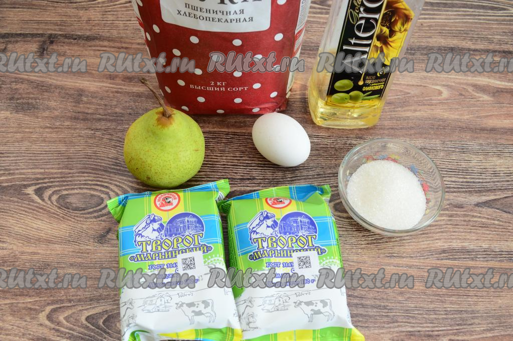 Подготовить продукты. Творог лучше брать жирностью не менее 5%. Грушу лучше взять мягкую внутри.