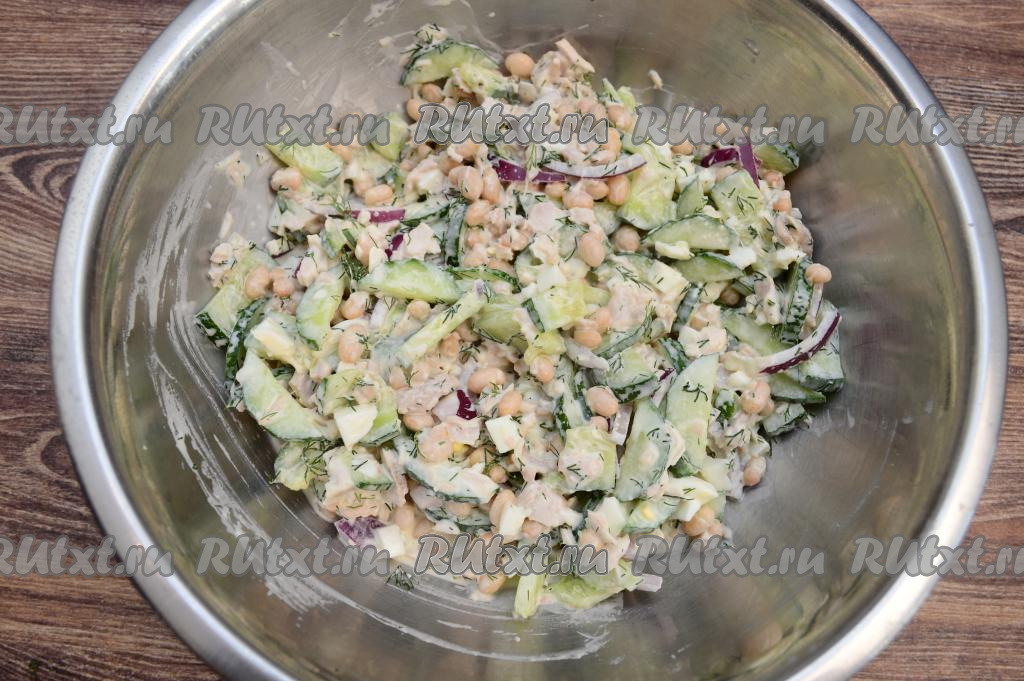 Заправить салат майонезом, посолить по вкусу, хорошо перемешать.