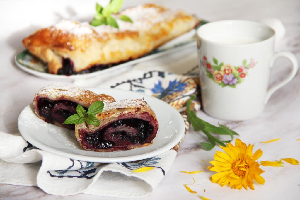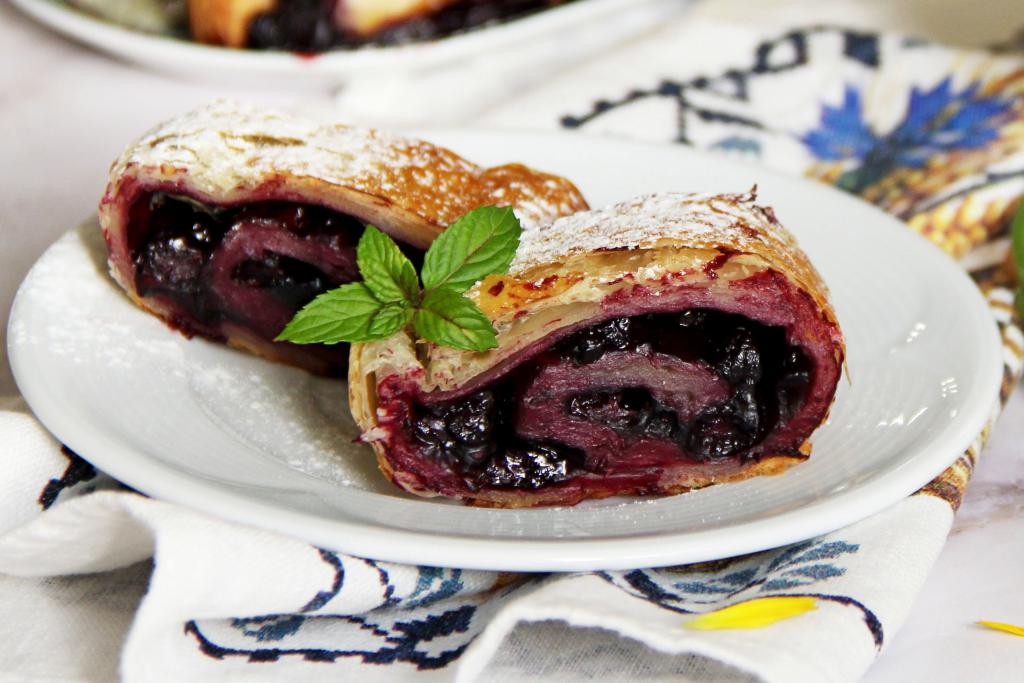 Для быстрой выпечки у меня всегда есть в морозилке слоёное тесто. Сегодня решила приготовить из слоёного теста рулет с черникой. Ягоды можно использовать как свежие, так и замороженные. Слоёный рулет с начинкой из сочной черники получается очень вкусным, ярким, ароматным и нежным. Он украсит любое чаепитие!