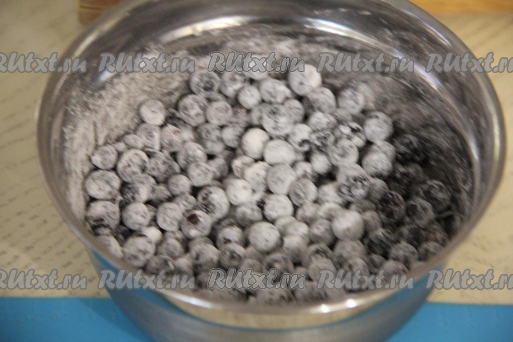 Крахмал в процессе выпечки будет желировать выделяющийся из ягод сок и начинка не будет вытекать. А в готовом рулете, благодаря крахмалу, черничная начинка не будет жидкой.