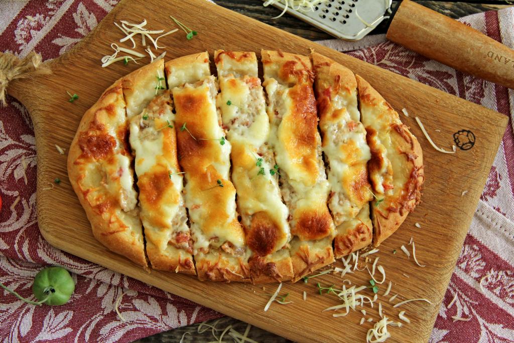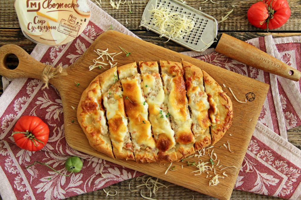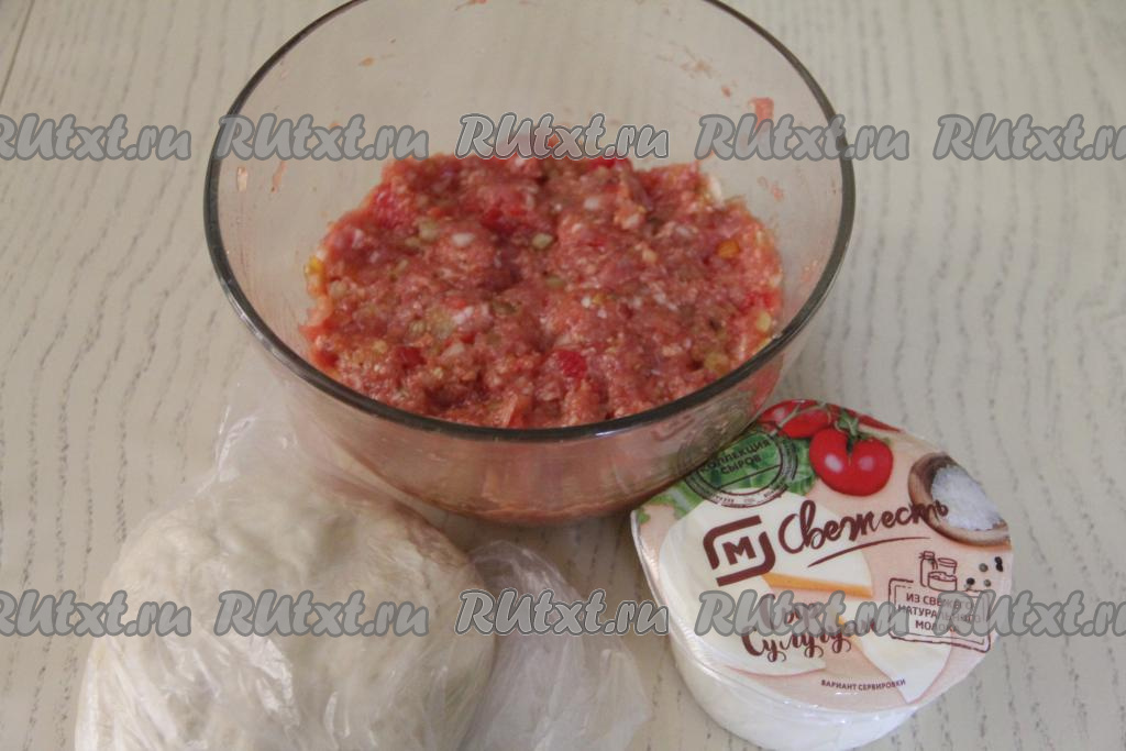После того как тесто "отдохнёт" в течение 30 минут, можно приступать к непосредственному формированию турецкой пиццы "Пиде". В качестве сыра можно взять сулугуни, моцареллу, либо любой твёрдый сыр на ваш выбор.