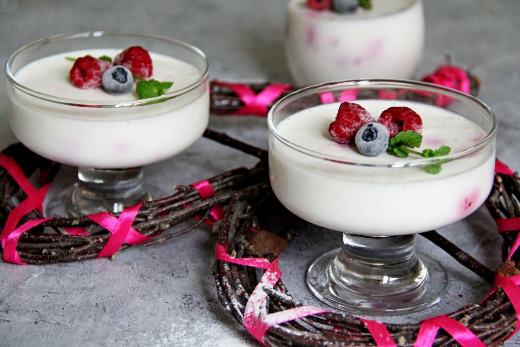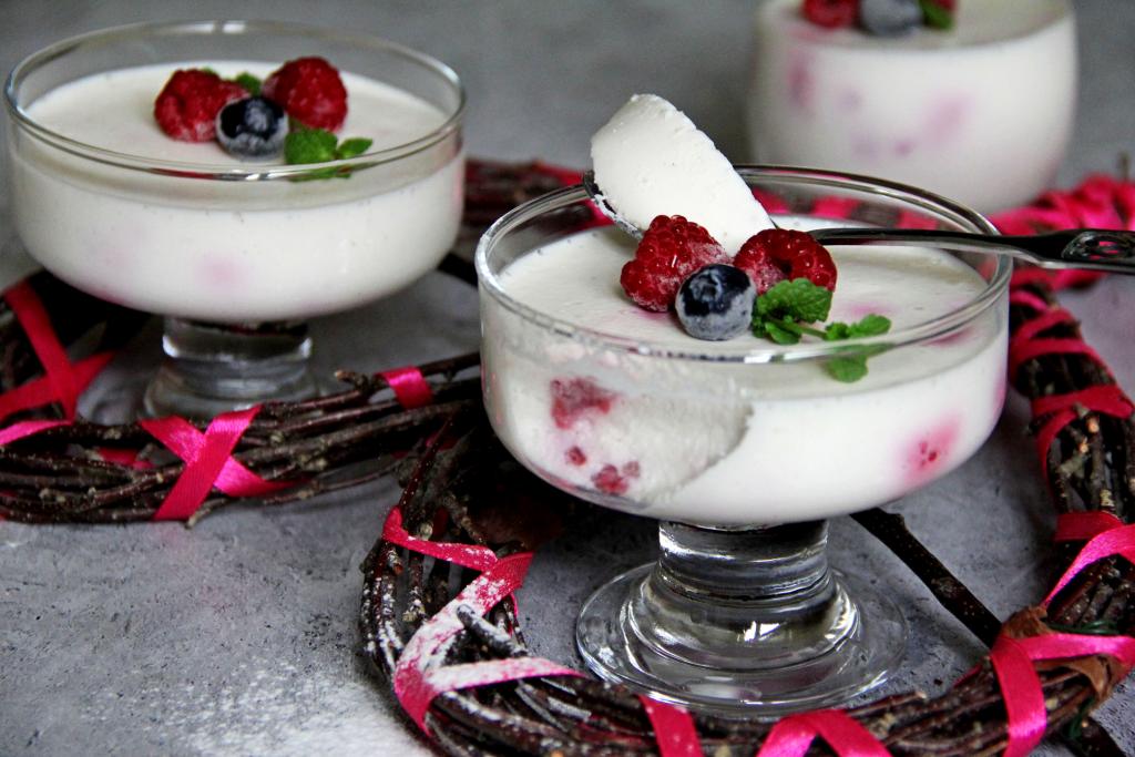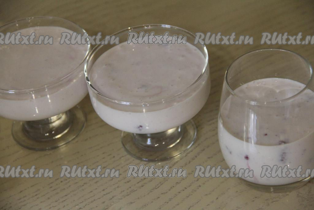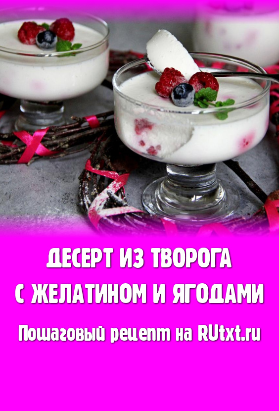 Очень нежный, воздушный, в меру сладкий десерт, приготовленный из творога с желатином и ягодами, подать к столу.