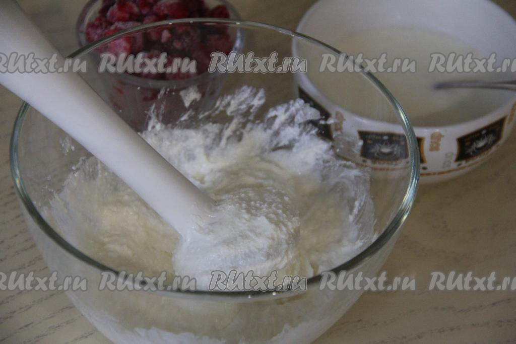 Пробить творожную массу погружным блендером до однородности.