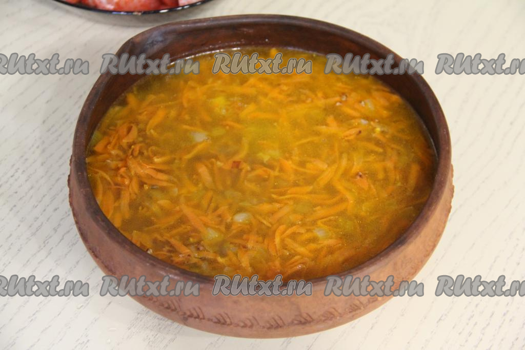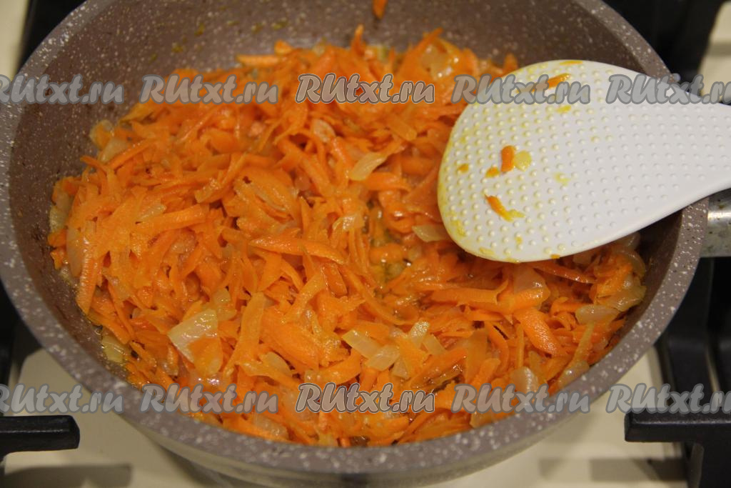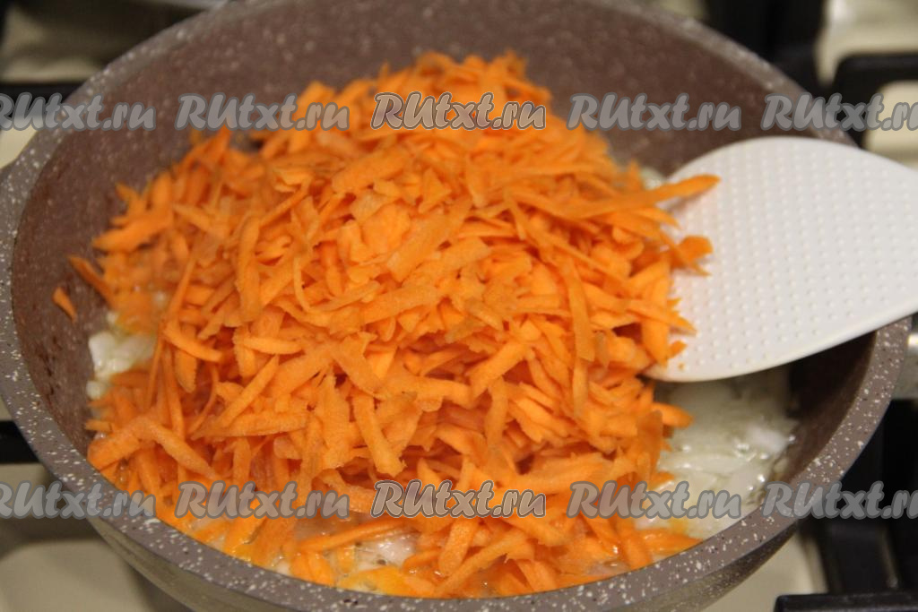 Затем добавить натёртую на крупной тёрке морковку, перемешать овощи.