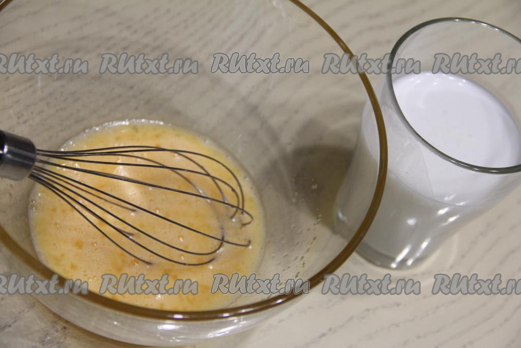 Перемешать яичную массу венчиком в течение 2-3 минут (сахар должен раствориться).