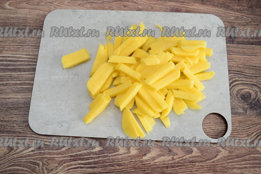 Картошку очистить, нарезать на средние брусочки.