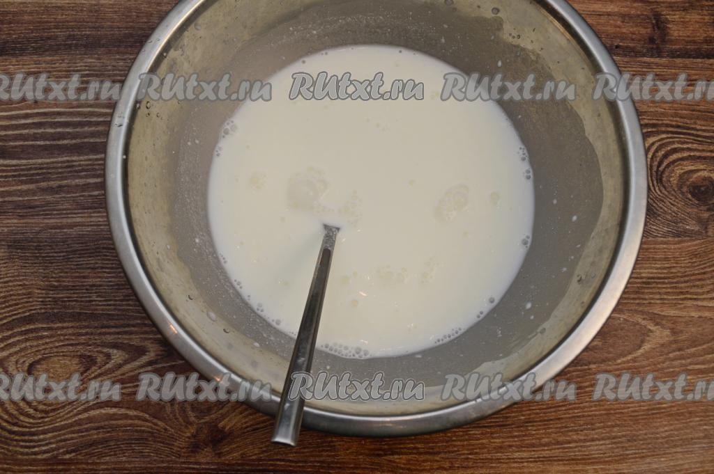 В глубокой миске соединить сметану и 300 миллилитров воды комнатной температуры, посолить по вкусу, тщательно перемешать получившийся сметанный соус. Если сметана кисловата, можно добавить небольшую щепотку сахара.