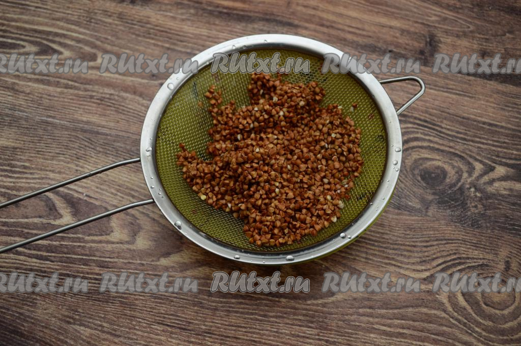 Гречку, при необходимости, перебрать, затем выложить в сито и очень хорошо промыть под проточной водой, лишней воде дать стечь. Для приготовления гречаников я взяла 80 грамм сухой гречки (это примерно 1/2 стакана объёмом 200 миллилитров). Поэтому в кастрюле нужно вскипятить 200-220 миллилитров подсоленной воды, выложить гречку, снова дать воде закипеть, перемешать, убавить огонь. Варить гречку минут 20 (до готовности). Затем дать варёной гречке остыть.