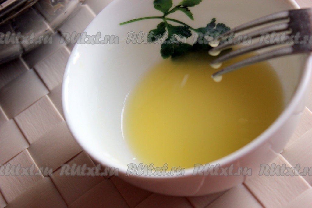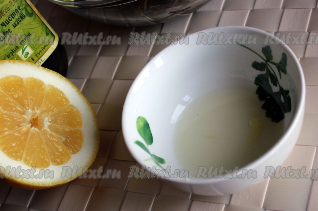 Для заправки соединить оливковое масло с лимонным соком и взбить до небольшого загустения.