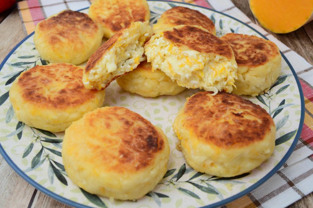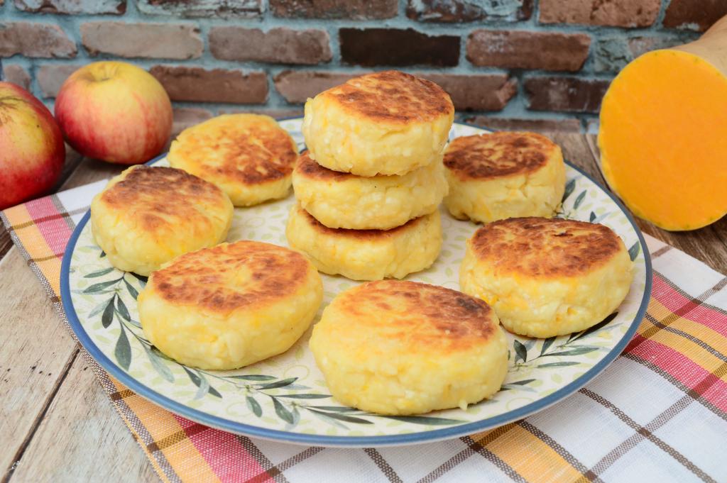Готовые сырники с тыквой и яблоком можно немного промокнуть бумажными салфетками, чтобы убрать лишнее масло, после этого подать к столу.