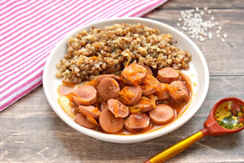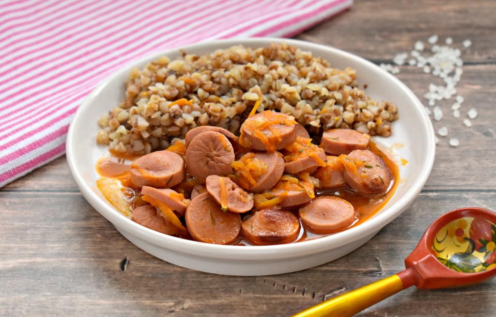 Вот так просто и быстро можно приготовить аппетитный, сочный, вкусный гуляш из сосисок. К столу его можно подать практически с любым гарниром, поливая томатной подливкой, в которой томился гуляш. Я в этот раз подала с гречневой кашей.
