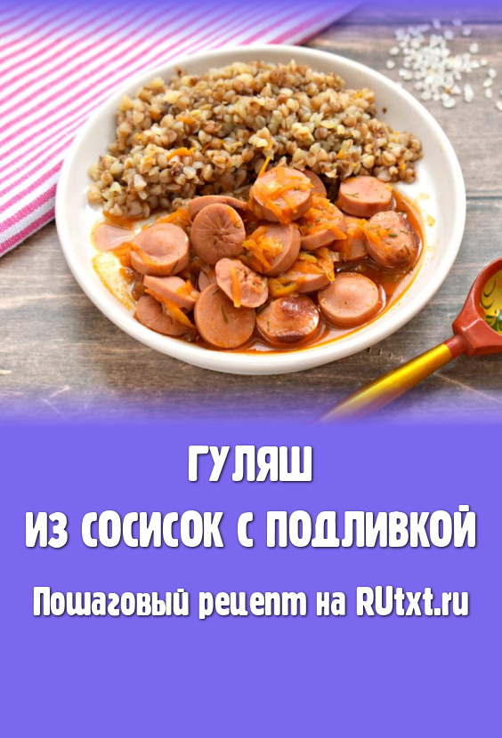 Предлагаю приготовить к обеду или ужину гуляш из сосисок с подливкой. Готовится это блюдо, как говорится, "на скорую руку". Этот рецепт выручит, когда нужно достаточно быстро, вкусно и сытно накормить семью. В качестве гарнира к гуляшу из сосисок можно подать гречку, рис, картошку, макароны.
