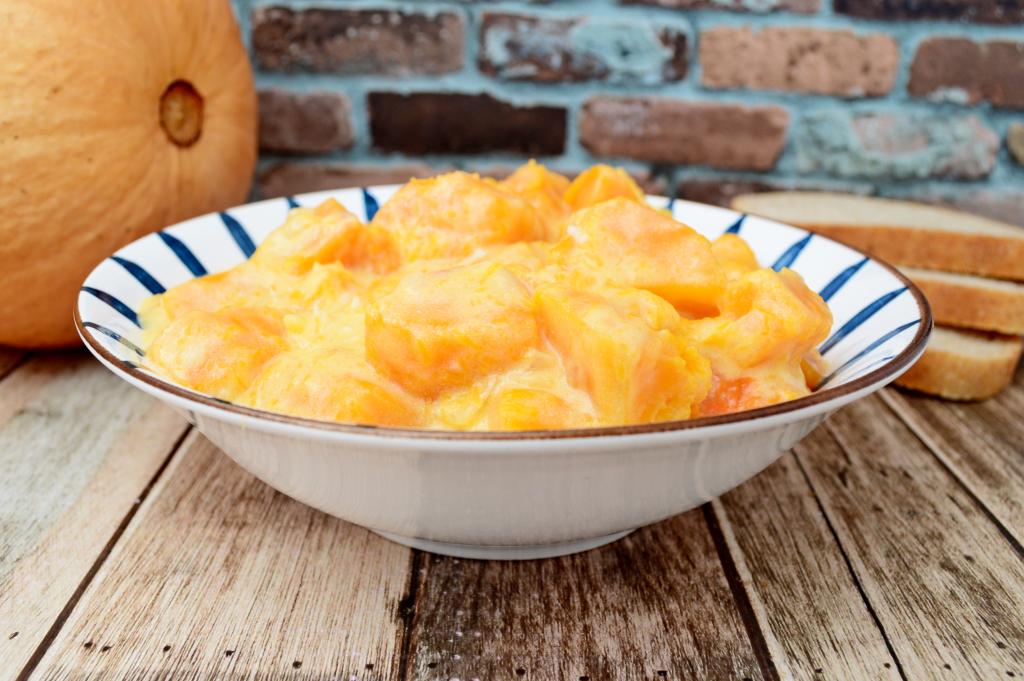 Яркую, сочную, вкусную тыкву, покрытую нежнейшим сметанным соусом, раскладываем по тарелкам и подаём к столу в качестве основного блюда или в качестве гарнира к мясу, птице.