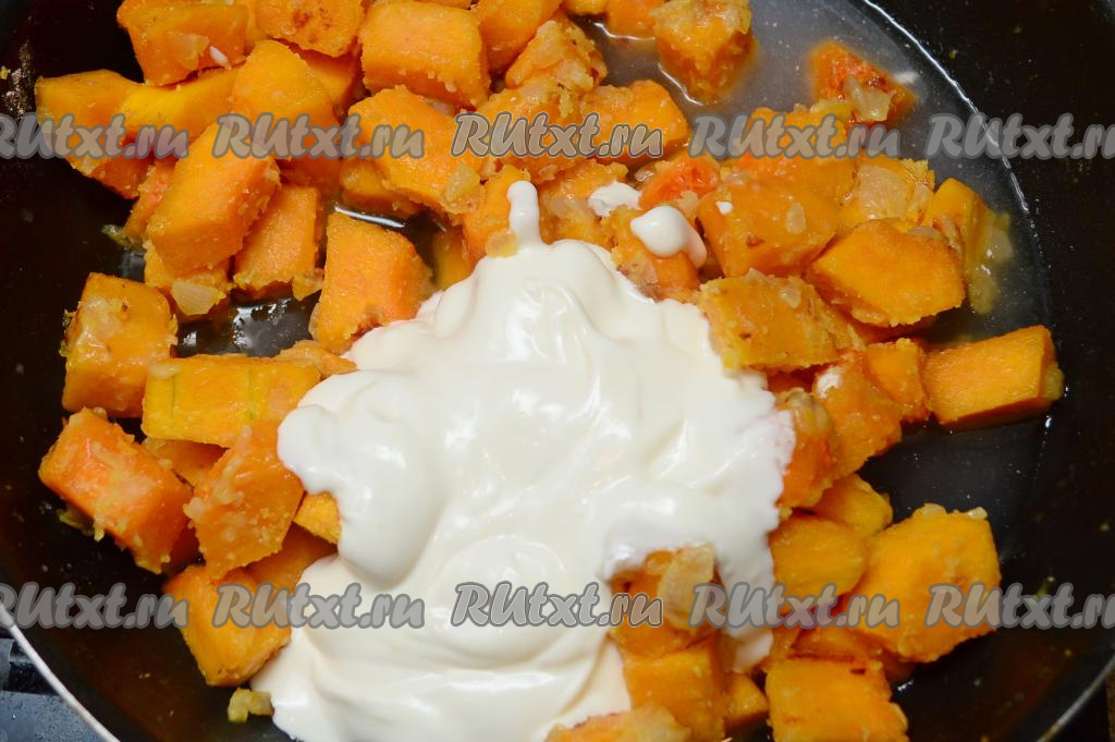 Я обычно после выключения огня оставляю тыкву пропариться в соусе ещё в течение 10 минут под крышкой.