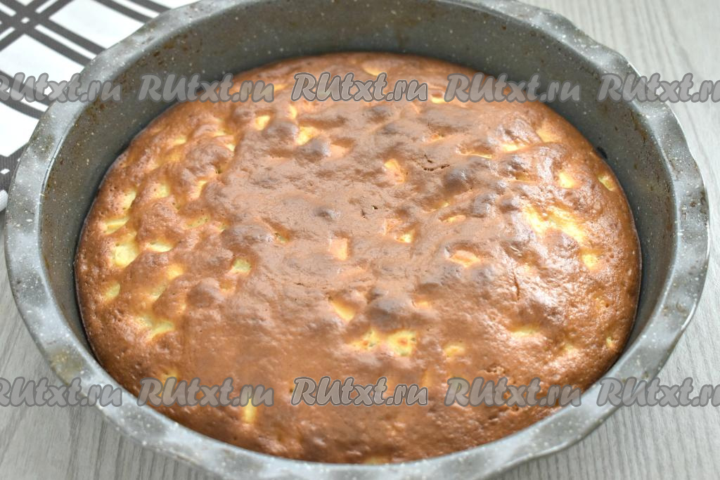 Для того чтобы проверить готовность, проколите шарлотку сухой деревянной шпажкой, если после прокола выпечки шпажка будет сухой, без следов теста, значит пирог полностью готов.