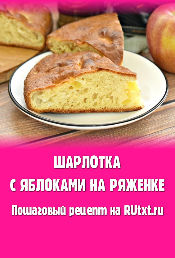 Достаём форму с готовой выпечкой из духовки, даём слегка остыть, а затем перекладываем на решётку и оставляем до полного остывания. Этот в меру влажный, аппетитный пирог с яблоками станет отличным дополнением и к чаю, и к кофе, и к компоту. Благодаря тому, что тесто замешано на ряженке, шарлотка получается нежной, пористой и очень вкусной.