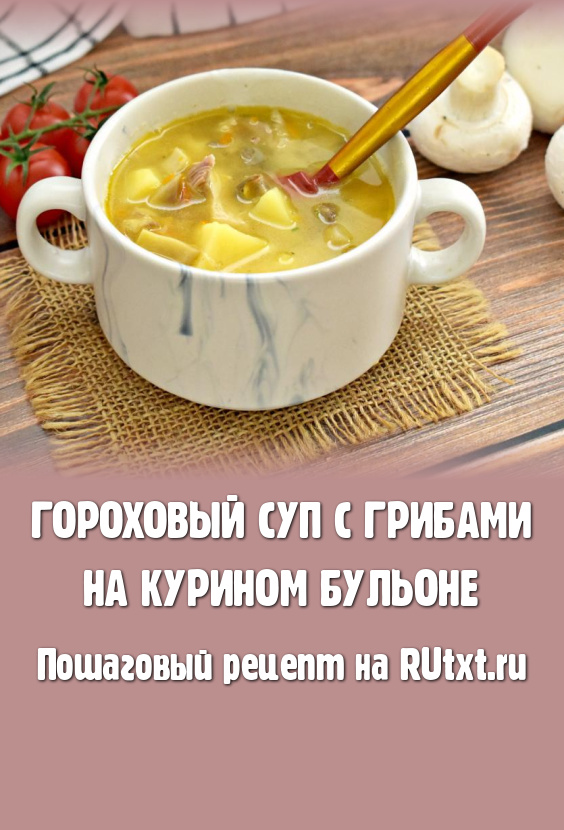 Иногда в своё домашнее меню я включаю гороховый суп. В этот раз сварила суп с горохом и шампиньонами на бульоне из курицы. Блюдо получилось аппетитным, насыщенным и очень вкусным. Грибы сделали гороховый суп на курином бульоне не только более сытным, но и ароматным. Приготовьте горохово-грибной суп и он внесёт приятное разнообразие в ваше меню!