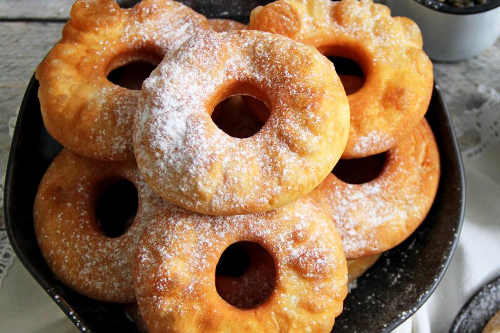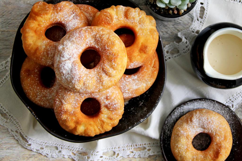 Нежные домашние жареные пышки, замешанные на ряженке, подать к столу в тёплом виде, присыпав сахарной пудрой. Уверена, эта выпечка, приготовленная на сковороде, многим придётся по вкусу!