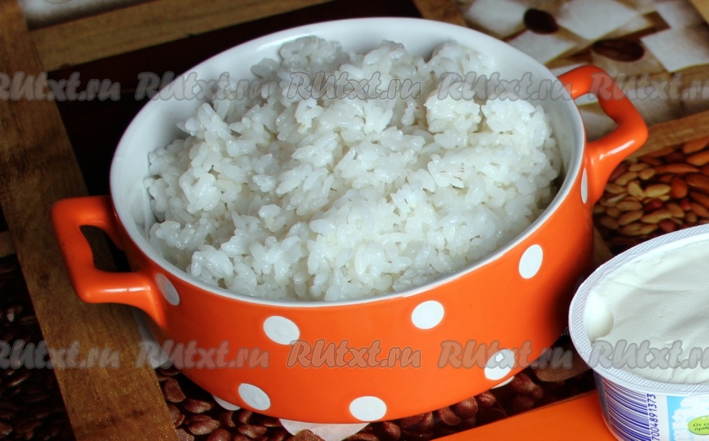 Сварить рис: хорошо промыть его в холодной воде, затем залить водой в соотношении 1 часть риса и 1,25 части воды, довести до закипания и затем 14 минут варить на слабом огне, не открывая крышку и не перемешивая рис. Готовый рис аккуратно переложить в другую посуду, встряхнуть, как-бы разрыхлить.