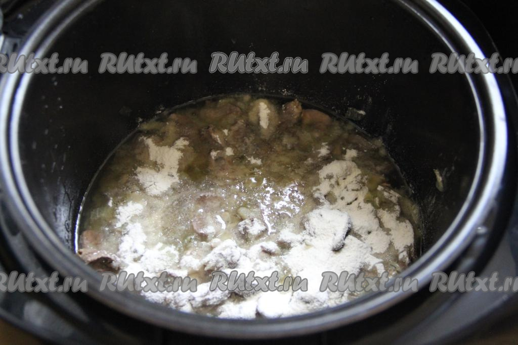 После звукового сигнала мультиварки добавить к сердечкам муку, тщательно перемешать.