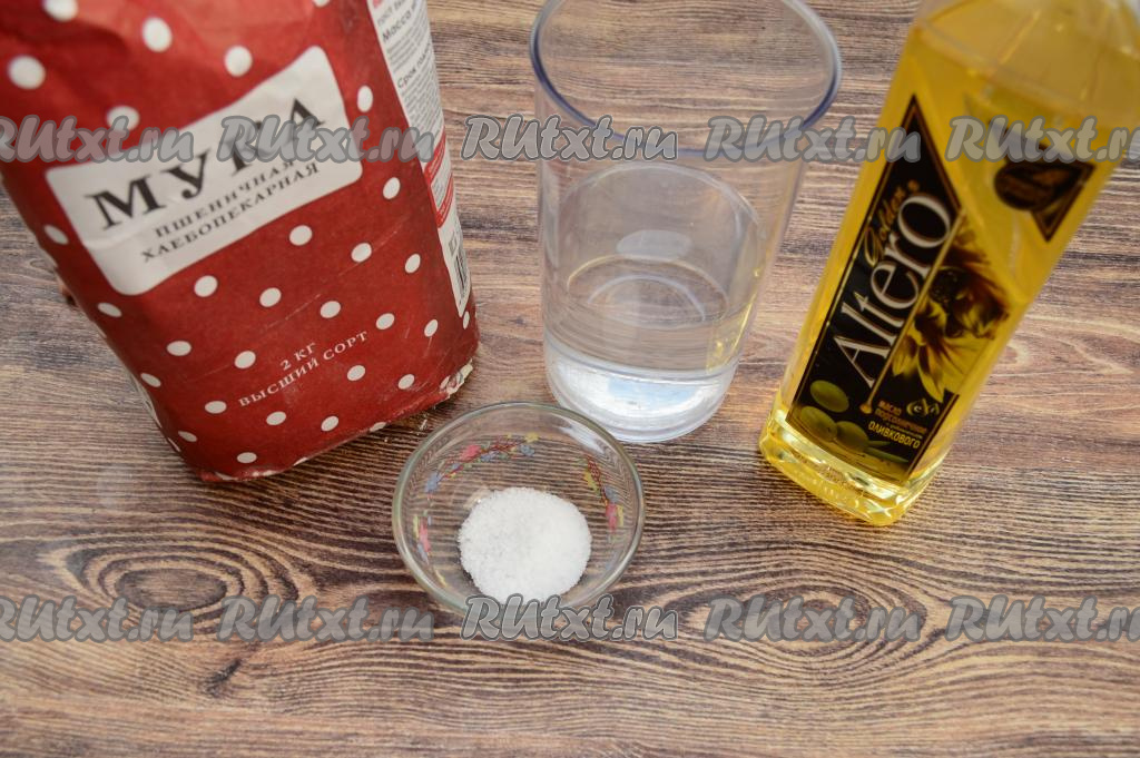 Подготовить продукты. Отмерить необходимое количество муки и воды.