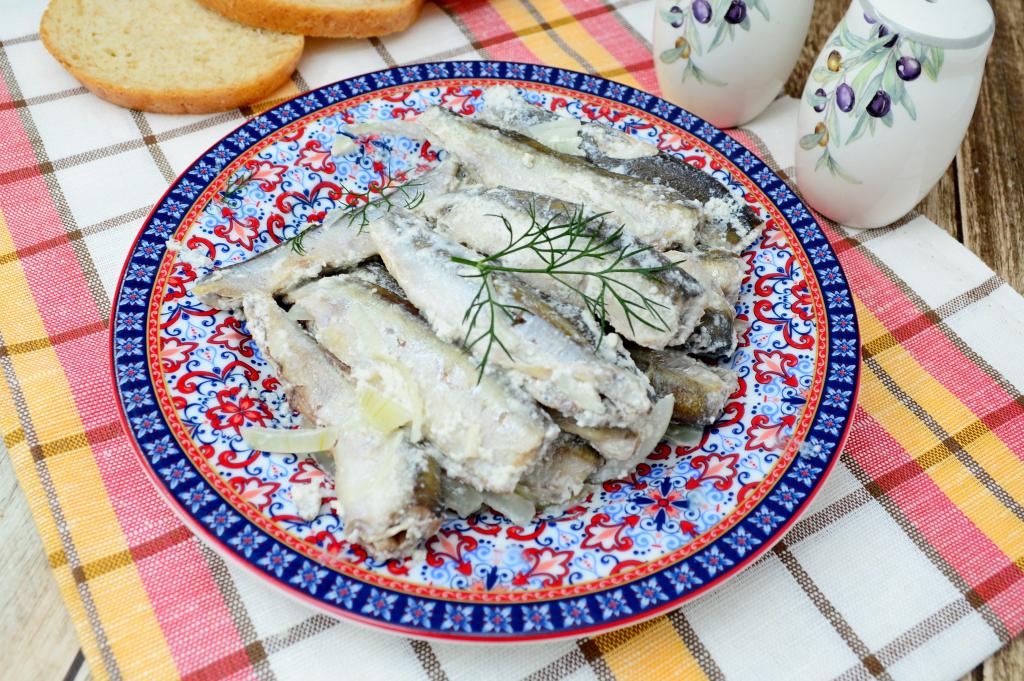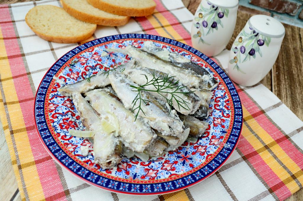 Мойва - очень вкусная и полезная морская рыба, которая продаётся во многих продуктовых магазинах. Приготовить её можно по-разному. В этот раз я решила потушить её в сметане с луком на сковороде. Рыбка получается не только вкусной и очень нежной, но и диетической, так как готовится без предварительного обжаривания с добавлением минимального количества масла. Лук в процессе тушения получается мягким, но не варёным. К столу мойву, тушёную в сметане, можно подать с рисом, картофелем, булгуром или любым другим гарниром на ваш выбор.