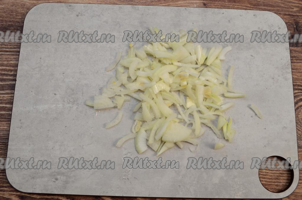 Лук очистить, промыть и нарезать на тонкие перья.