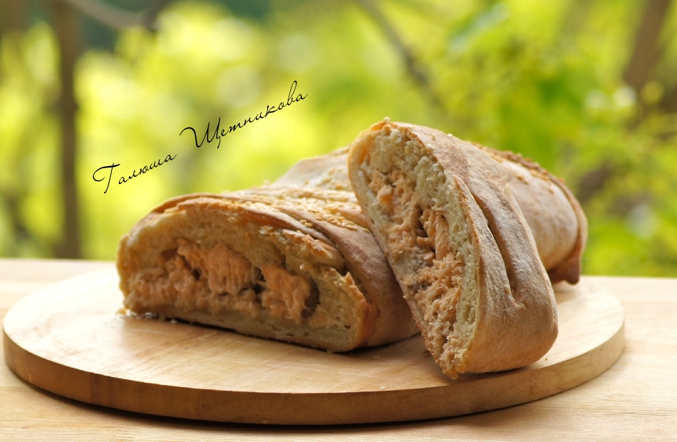 Заплести рыбный пирог косичкой.