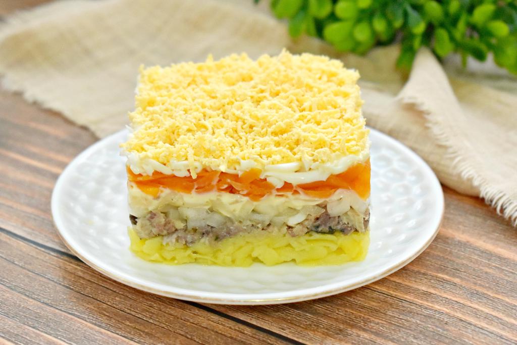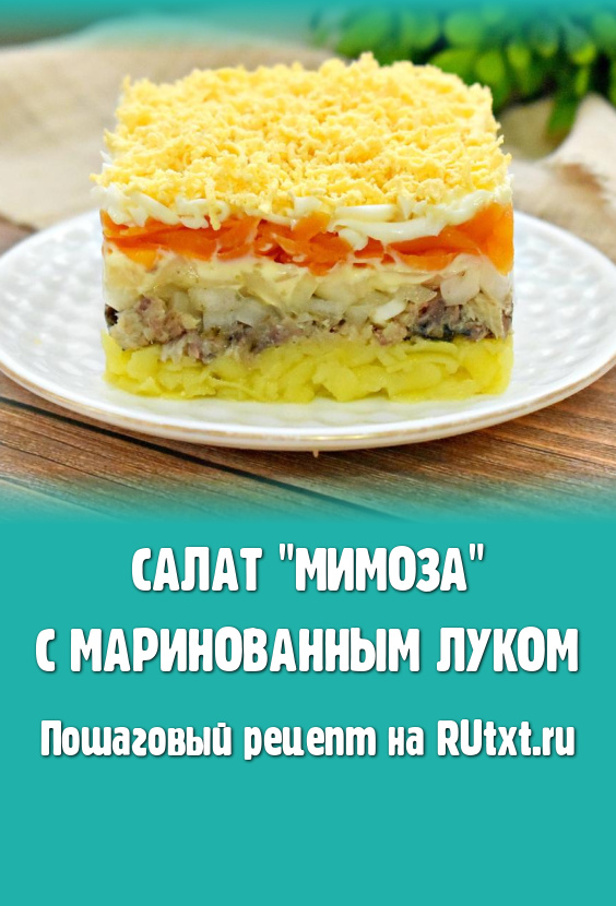 Сочный, вкусный, аппетитный салат "Мимоза", приготовленный с маринованным луком, удачно впишется в любое меню!