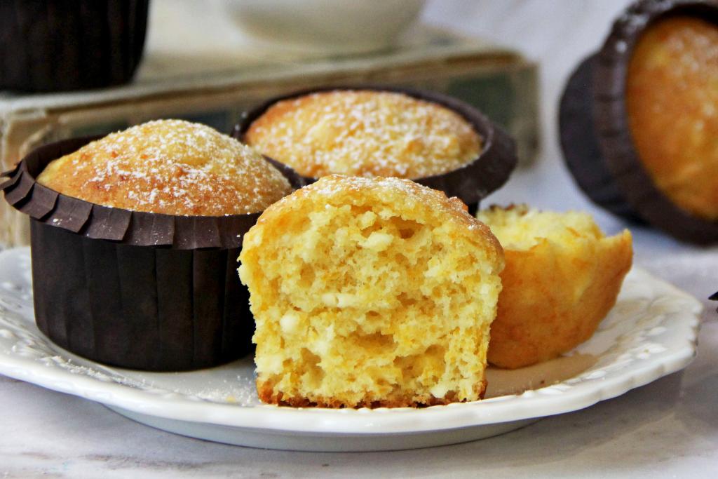 Готовую выпечку достать из духовки, дать немного остыть. Воздушные, аппетитные, вкусные творожно-тыквенные кексы подать к столу.