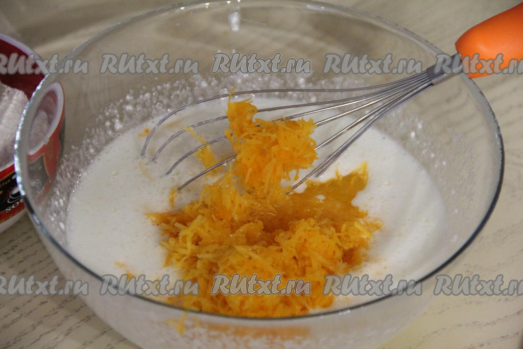 50 грамм тыквы, очищенной от кожуры, волокон и семечек, натереть на мелкой тёрке, добавить в миску с яично-творожной смесью, перемешать.
