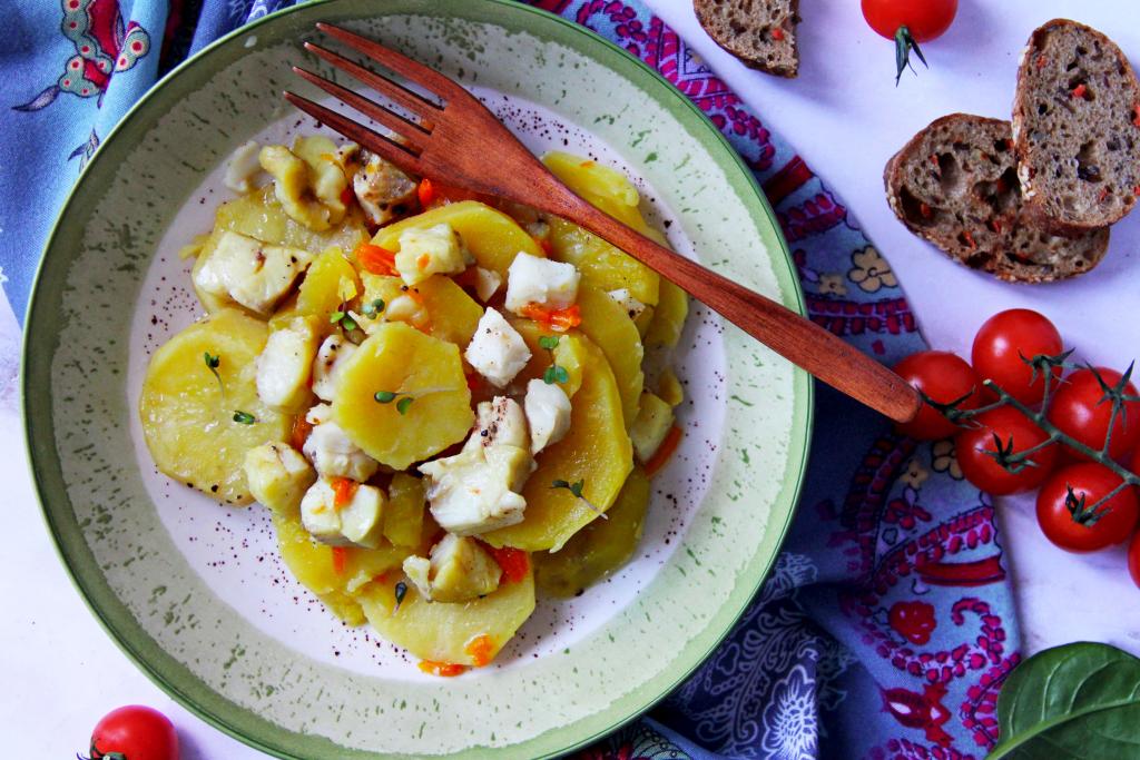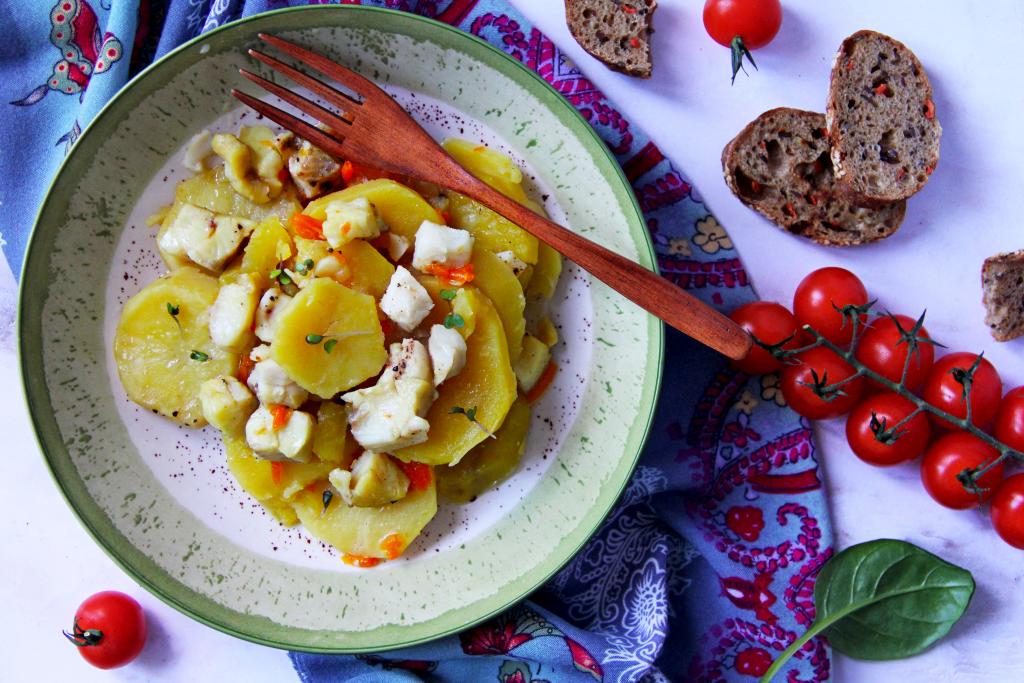 Нежнейшее филе минтая вместе с мягкими кусочками картошки, аппетитными морковью и луком разложить из чаши мультиварки по тарелкам и в горячем виде к обеду или ужину подать к столу.