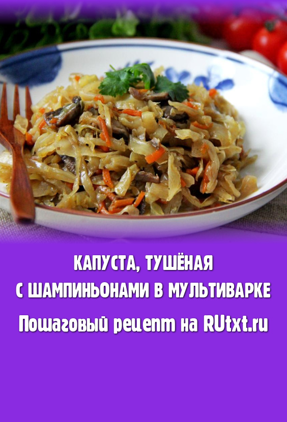 Мягкую, аппетитную, ароматную капусту, тушёную с нежными, ароматными шампиньонами, разложить из чаши мультиварки по тарелкам и в качестве гарнира или полноценного самостоятельного блюда подать в горячем виде к столу.