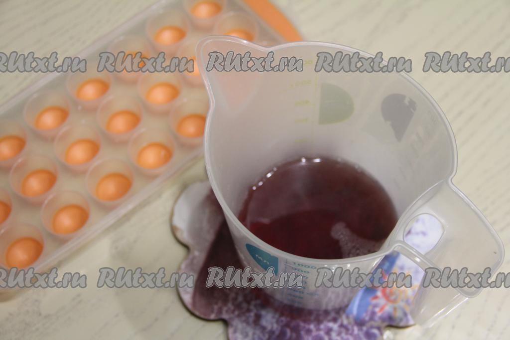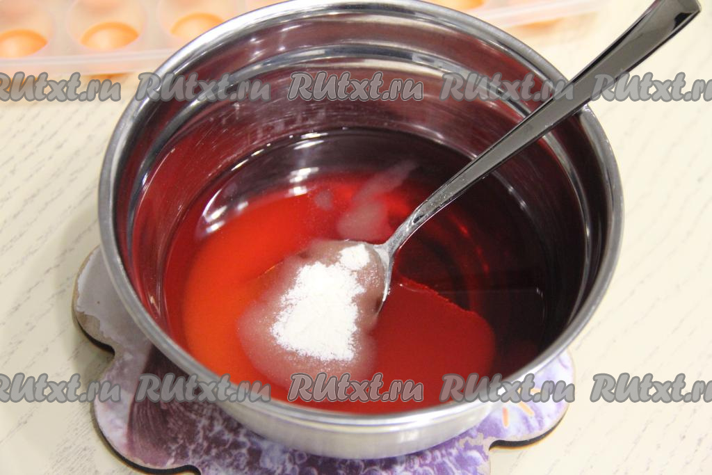 Разлить массу по формочкам для льда, оставить форму минут на 15 при комнатной температуре, а затем убрать на 2-3 часа (до полного застывания мармелада) в холодильник.