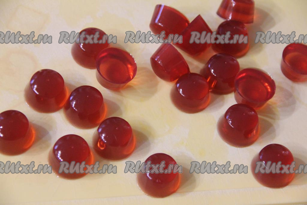 Готовый мармелад, приготовленный из сока с агар-агаром, прекрасно вынимается из формочек.