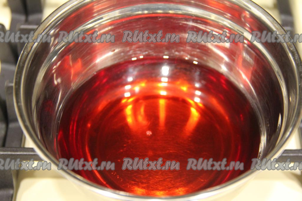 Сок влить в сотейник и слегка прогреть на достаточно сильном огне.